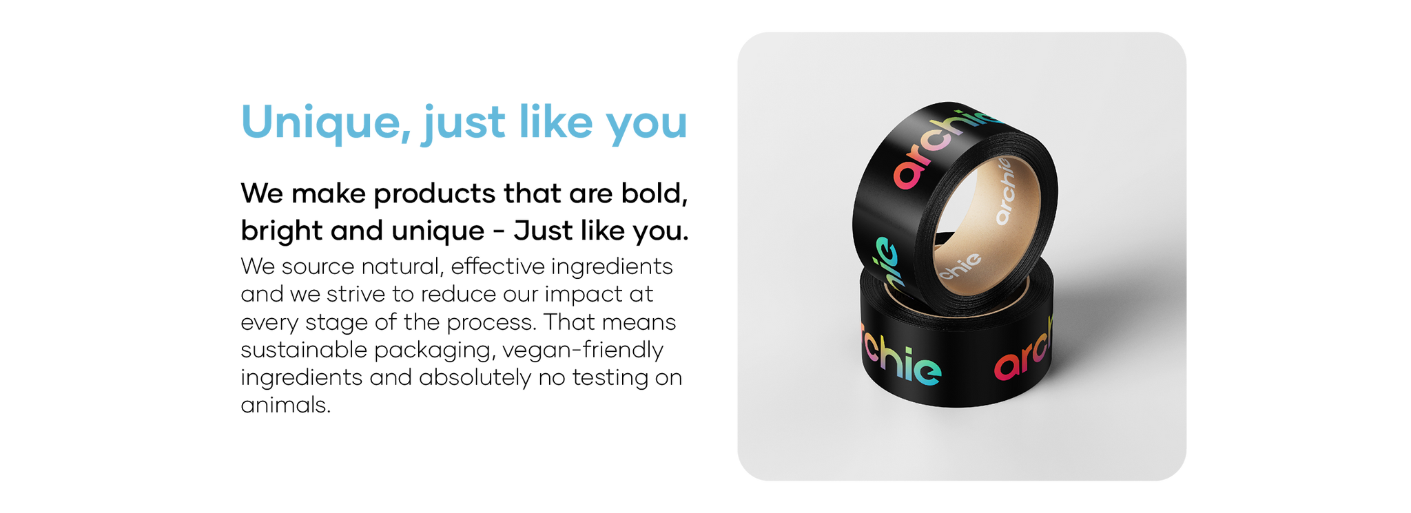 Archie is cruelty-free and no products or ingredients have been tested on animals.