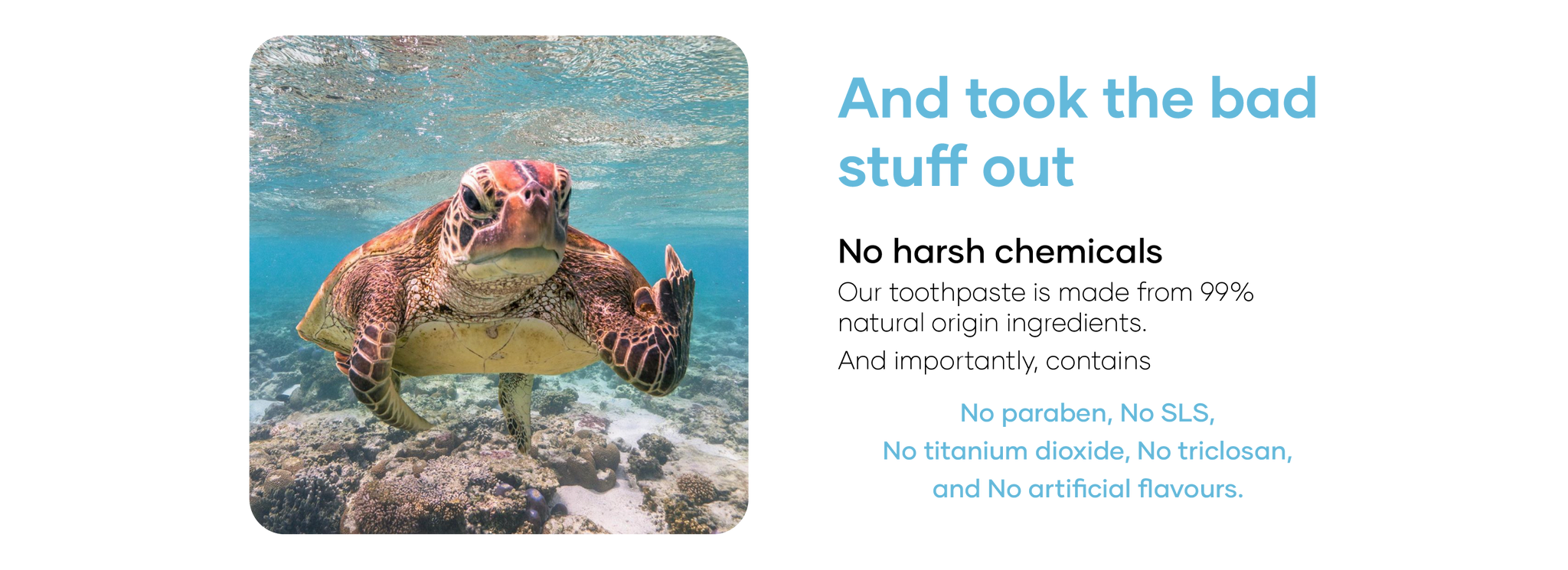 We’ve made sure our toothpaste is vegan-friendly and contains no animal- derived ingredients.